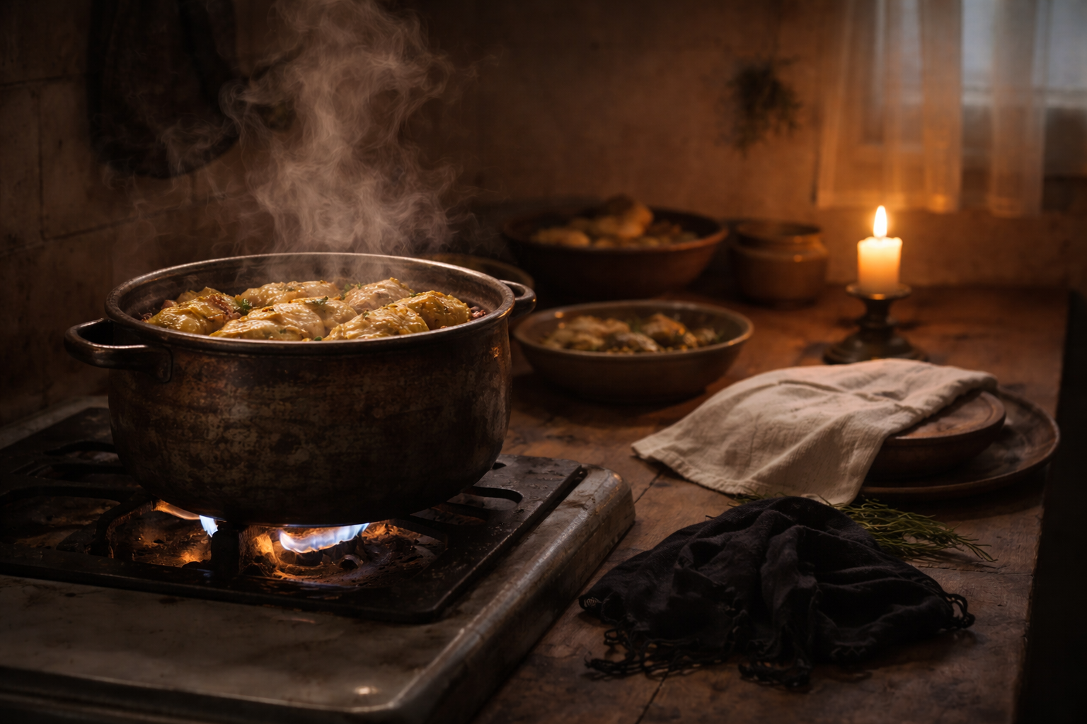 A găti sarmale pentru doliu înseamnă a continua un gest cunoscut într-un moment de discontinuitate. A pune ceva stabil lângă ceva ireversibil.