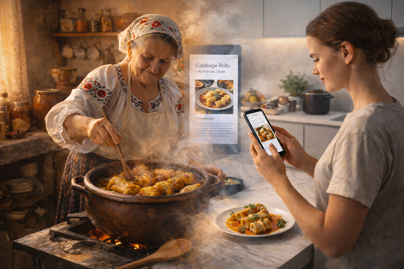 Acest proces nu este o ruptură, ci o formă de adaptare. Tradiția nu este anulată de tehnologie, ci pusă în circulație. Rețetele ies din bucătărie și ajung pe grupuri de familie, pe rețele sociale, în caiete digitale. Gesturile vechi capătă noi forme de transmitere.